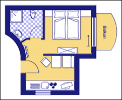 Die Ferienwohnung 9 ist ca. 85 m² groß und mit drei Schlafzimmern ausgestattet. Im größten Schlafzimmer befindet sich ein Doppelbett und ein ausziehbarer Schlafsessel. Von diesem Zimmer aus hat man Zugang zum Balkon. Das zweite Schlafzimmer ist mit zwei Einzelbetten ausgestattet. Im dritten Schlafzimmer befindet sich ein Doppelbett. Das Badezimmer ist mit einer Badewanne ausgestattet. Das WC befindet sich in einem seperaten Raum. Der Wohnbereich ist mit einer Küche und einer Sitzecke sowie einem TV ausgestattet. Auch vom Wohnbereich aus gelangt man auf den Balkon.